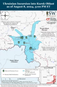 8 серпня ЗСУ продовжували швидке просування вглиб Курської області і деякі українські підрозділи нині діють на відстані до 35 кілометрів від міжнародного кордону з Сумською областю.
