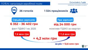 У департаменті також зазначають, що детальний фінансовий звіт допомагає не лише контролювати дотримання законодавства, а й виявляти реальний вклад кожного підприємства у бюджет міста. За інформацією департаменту економічного розвитку Львівської міської ради, у 2024 році 26 найбільших готелів Львова, сплатили  61,5 млн грн податків до бюджету міста.