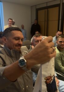 Оригінальний подарунок від Караванської Усику у Лондоні за лічені години до історичного бою за титул абсолютного чемпіона світу в суперважкому дивізіоні передала телепродюсерка Оксана Гнатишин.