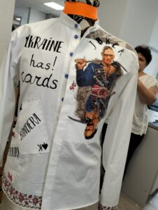 Тема карт була обрана не випадково: Джокер — це Усик-козак, а серед «королів» — історичні постаті Степан Бандера і Симон Петлюра – ті, хто виборював вільну Україну. Так дизайнерка обіграла резонансну тему про те, чи має Україна «карти», щоб перемогти. Відповідь американському президенту Дональду Трампу вишита чорним по білому: Ukraine has cards! (Україна має карти!). Доки в Україні народжуються герої – нас не зламати.