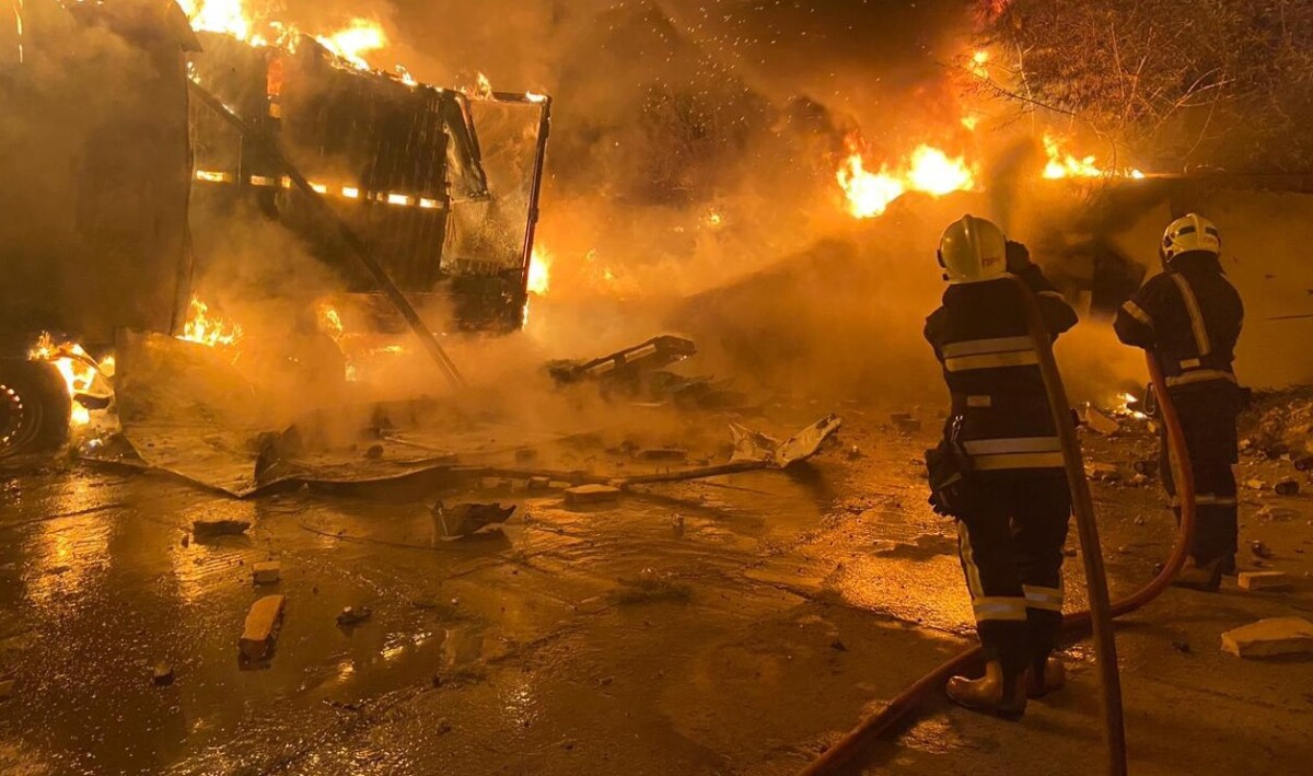 Так, унаслідок падіння уламків дронів зайнялася пожежа у промисловій зоні Львівського району. Загорілися 4 вантажівки. Рятувальники оперативно прибули на місце займання та ліквідували його за 1,5 години. Машини, однак, ремонту не підлягають.