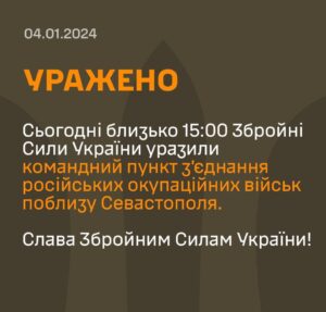 Збройні сили України близько 15:00 уразили командний пункт з’єднання російських окупаційних військ поблизу Севастополя.